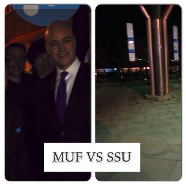 Bra energi i M-kampanjen när @mufswe mötte upp Reinfeldt utanför tv-huset efter #svtagenda. Foto: @KarapetArinpic.twitter.com/b9JS1w21sZ