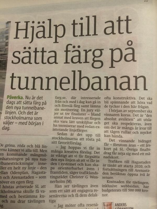 S var först föreslå såväl utbyggd T-bana Hagastaden, Älvsjö mm, som dess färg #lilalinjen Din favoritfärg? #08polpic.twitter.com/xXLwQyPXb3