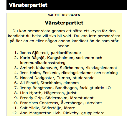 Alla på V:s Sthlms-lista - förutom Sjöstedt - uppger stadsdel. Var bor Jonas nu igen? Just det, Östermalm! #svpolpic.twitter.com/8jDK8zwgEV