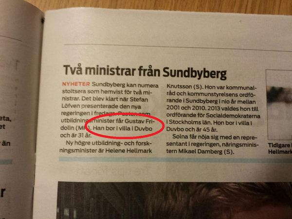 Cred. till @mittistockholm som skriver var Fridolin bor - dvs i exklusiva Duvbo - inte Rissne, som han själv påstår.pic.twitter.com/Y0975SIwMF