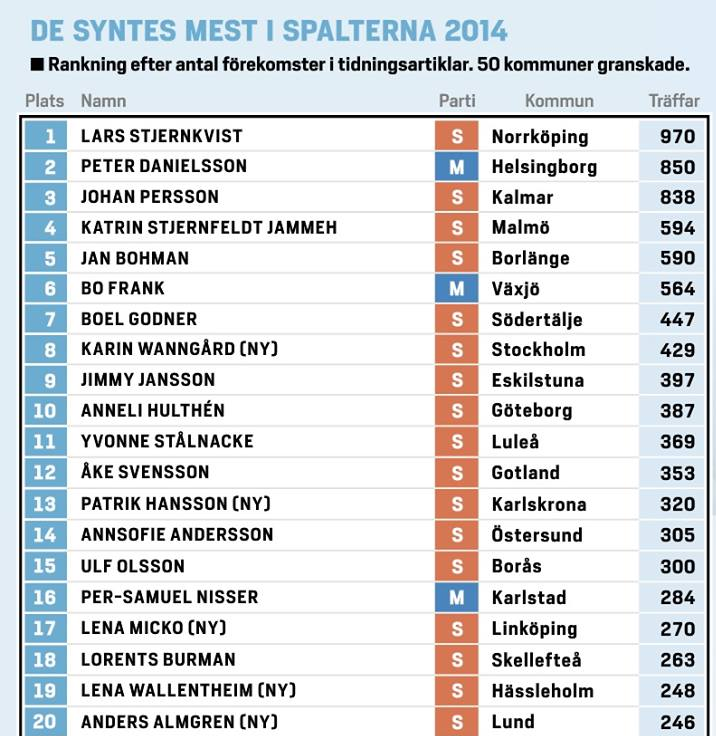 Årliga listan av @dagenssamhalle: 20 mest synliga kommunpolitikerna #svpolpic.twitter.com/8el78gHrIB