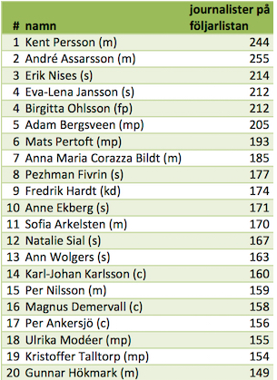 Tydligen följer jag näst flest journalister, enligt @dagensopinion. Kan rekommenderas - exklusiv information först.pic.twitter.com/f33nTKBBc1