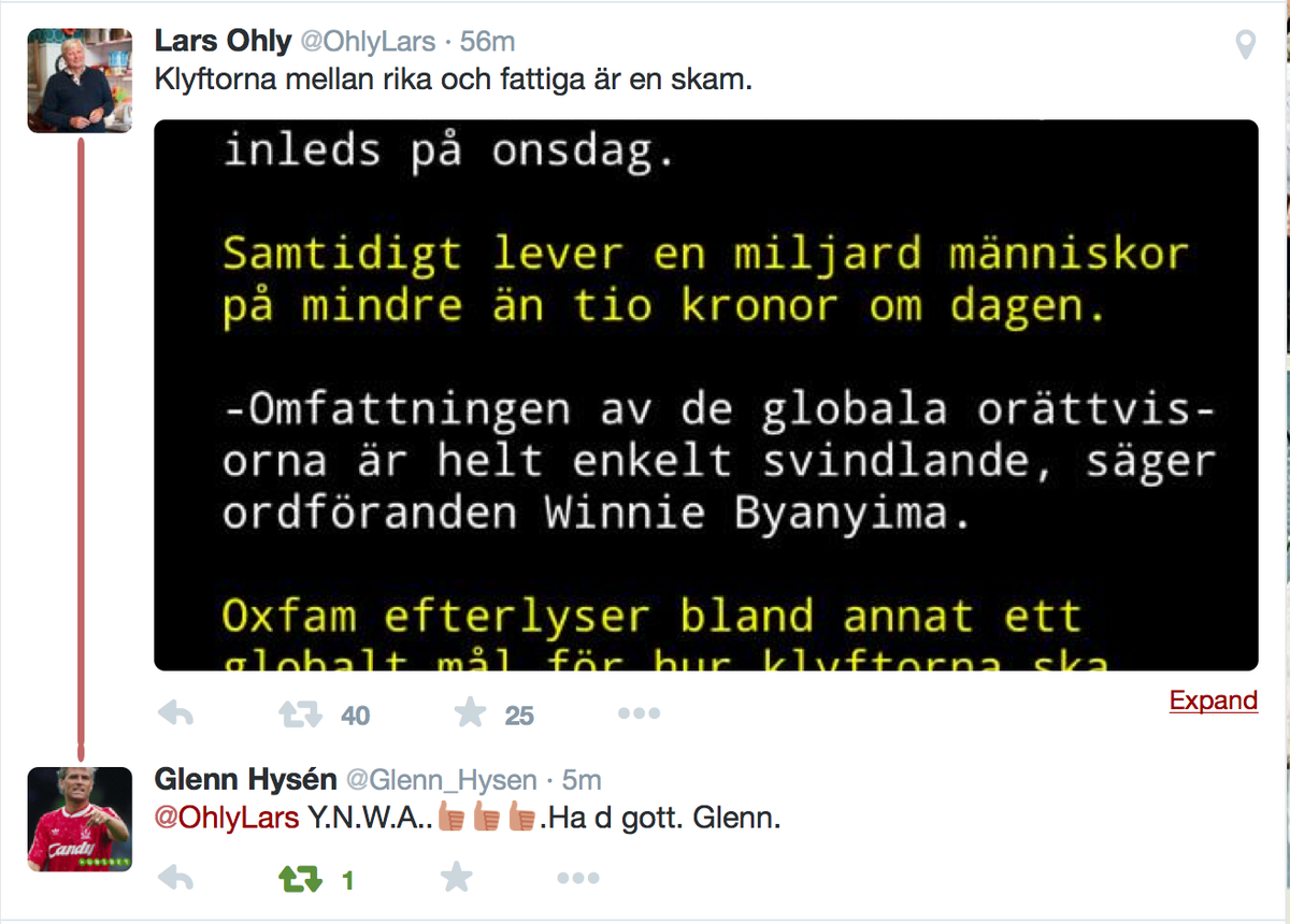 Crazy Monday ✓ V-politiker klyftor större problem än fattigdom ✓Fotbollskändis kör Liverpoolfras ✓Journalist lyriskhttps://twitter.com/PatrikSyk/status/557091001937195008 …