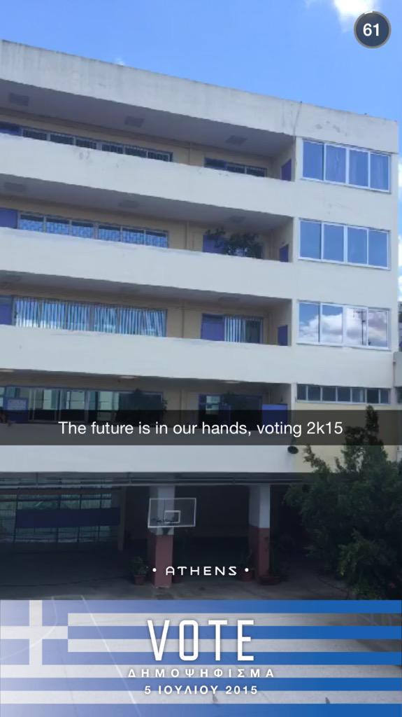 Brilliant move from @Snapchat to live-cover from voters in #Greece today during referendumpic.twitter.com/Klwtk0rJVq
