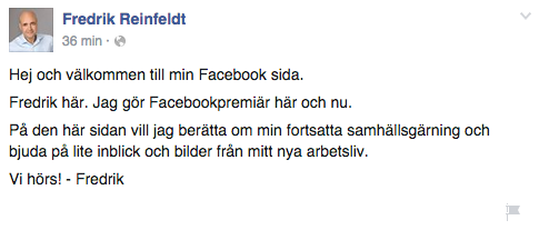 Fredrik Reinfeldts första Facebookinlägg https://www.facebook.com/permalink.php?story_fbid=10153076470774103&id=314249689102 …pic.twitter.com/PIFjAvpqHx