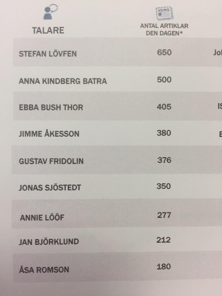 @assarsson Lite underligt mått? Det relevanta är väl vem som VAR den mest omskrivna?#Almedalsrapporten -