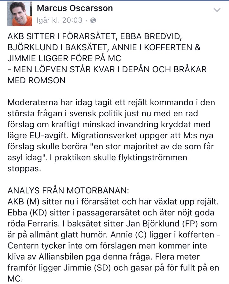 @assarsson så du stödjer nu Åkesson som "leder" racet och hoppas att AKB vågar följa efter på hans snirkliga racerbana? Kanske en omkörning?