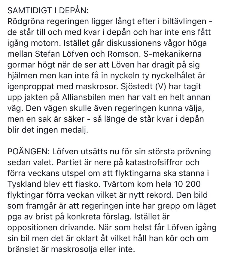 @assarsson ...märkligt tänk att man anser det vara Löfvéns problem enbart, och inte riksdagens och -samtliga- politikers? Bättre kan ni... -