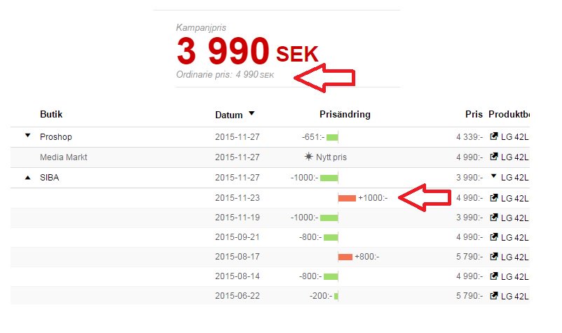Butiker höjer priser före #blackfriday sedan sänker igen. Kolla Prisjakt mfl. Här SIBAs pristrixande på tv. pic.twitter.com/fKVAON2Yco