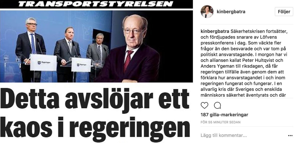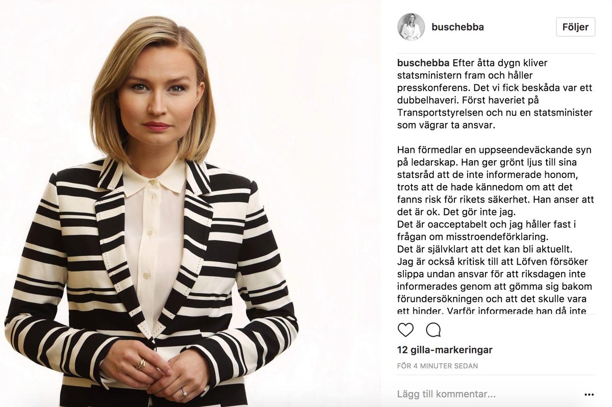 Smart av @KinbergBatra, @annieloof & @BuschEbba som idag valt @instagram om Löfvens pressträffpic.twitter.com/rw3TJjdZRe