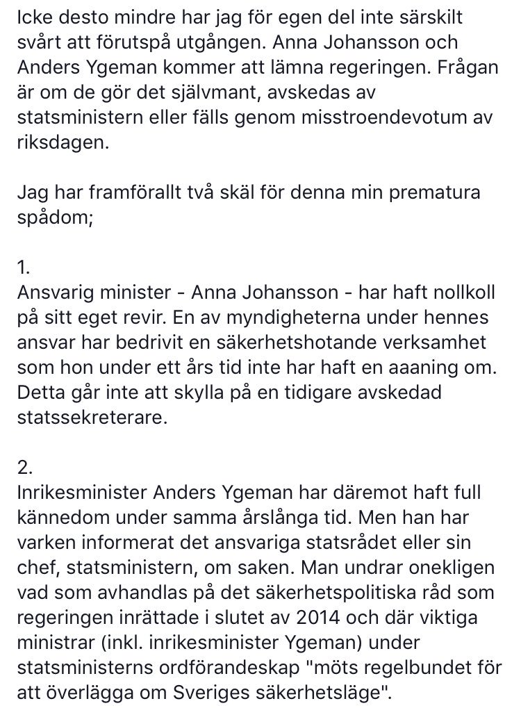 Ygeman har ju hållhake på Löfven och tar honom med sig i fallet. Alliansen för fega för misstroende.