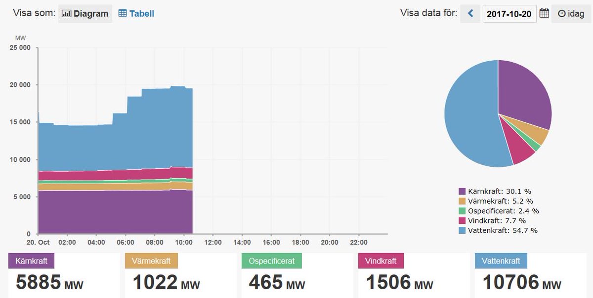 85 procent av den svenska elproduktionen vattenkraft och kärnkraft just nu. Utsläppsfritt. Effektivt. pic.twitter.com/nx04irOvjz