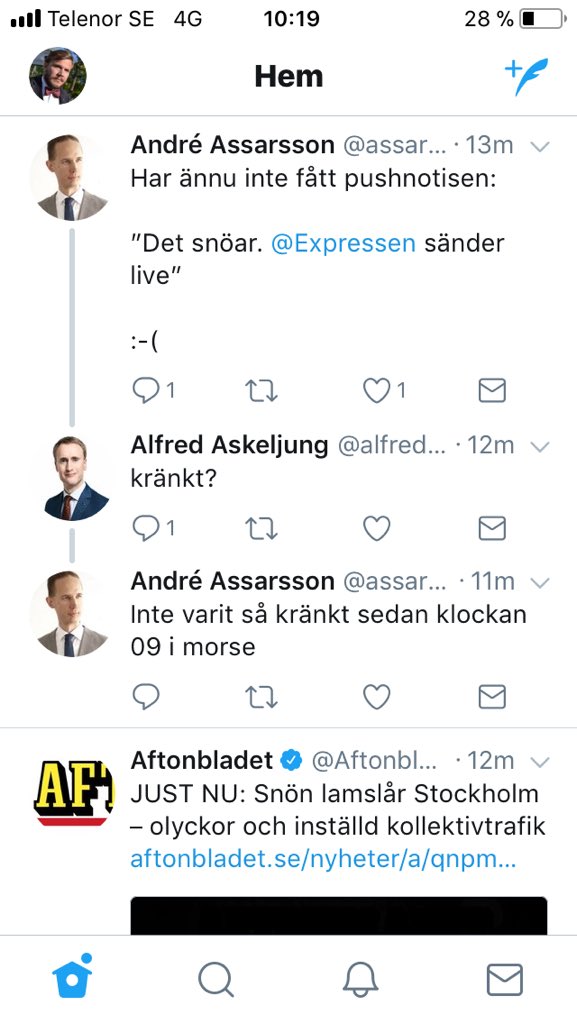 Komiskt nog kom din tweet precis efter aftonbladets sändning on snön i mitt flöde:pic.twitter.com/BUsEpTPvtt