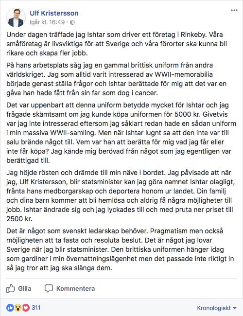 Fantastiskt gräv, fiskargubbe ! Förhoppningsvis fortsätter din rapportering under valrörelsen med samma kvalitet. Ser fram emot vad mer du kommer gräva fram. Härligt!Иван опубликует это на шведском счете
