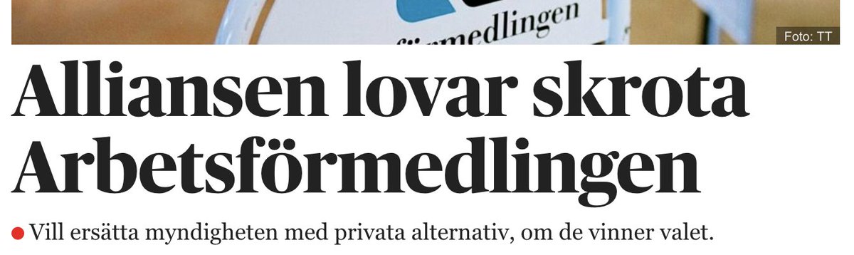 🚨9 av 10 svenskar har inte förtroende för Arbetsförmedlingen. 🚨80 miljarder kr kostar den skattebetalarna. 🚨Förmedlar bara 15 procent av alla jobb Bra besked av Alliansen ikväll. https://www.dn.se/nyheter/sverige/alliansen-lovar-att-skrota-arbetsformedlingen-om-man-man-vinner-valet/ … pic.twitter.com/RbcW2ZciSx