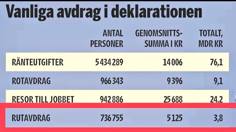 Resor till jobbet alltså en tredjedel av ränteavdrag, hade ingen aning om det rörde sig om sån stor summa