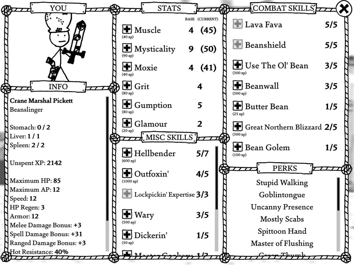 Time to save the world from hellcows and demon clowns. (Another thing I love in #WestOfLoathing is that its inventory system is a packrat's delight. Chaotic to manage, but you can go through the game hoarding everything.)pic.twitter.com/aMvI7gFg37