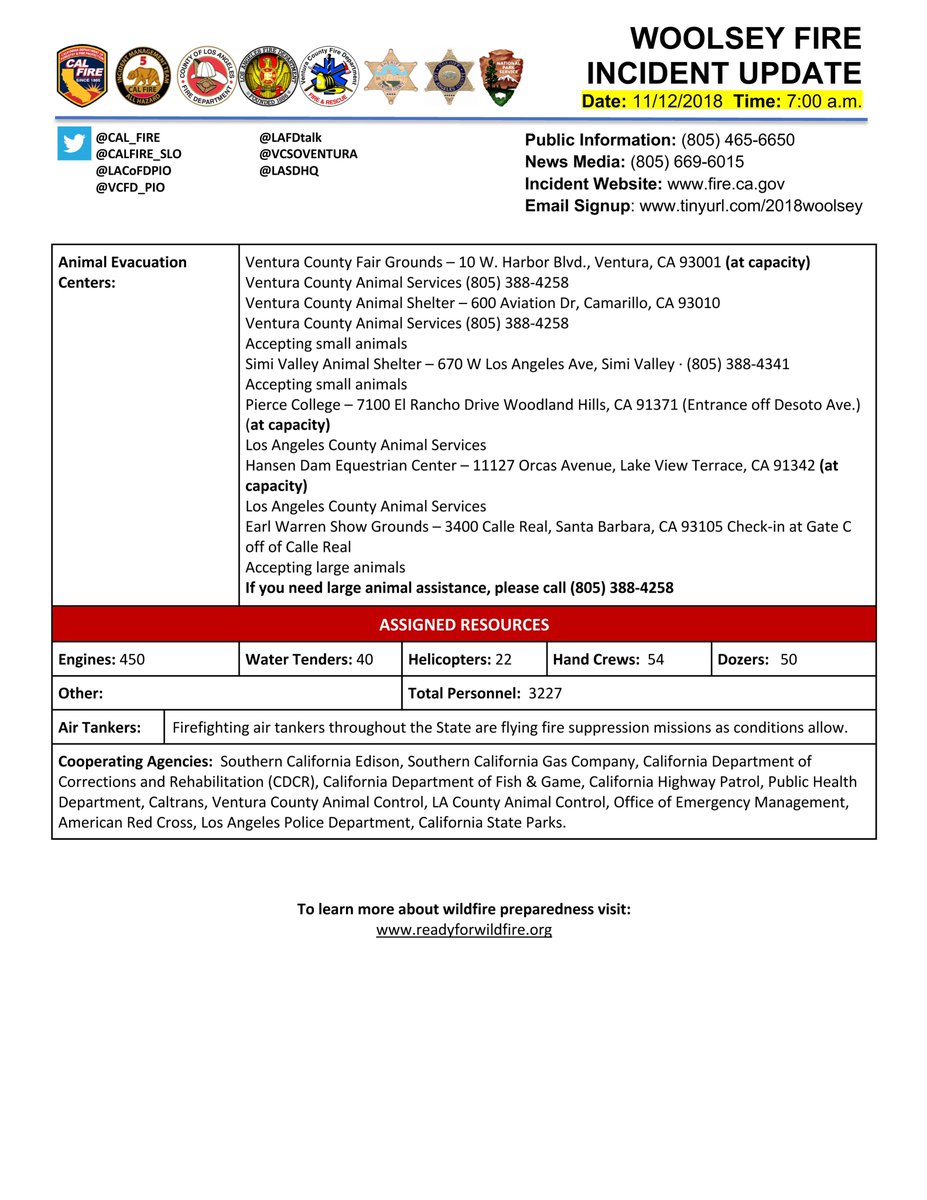 #WoolseyFire Morning Update for November 12th pic.twitter.com/dNDn6N71hm