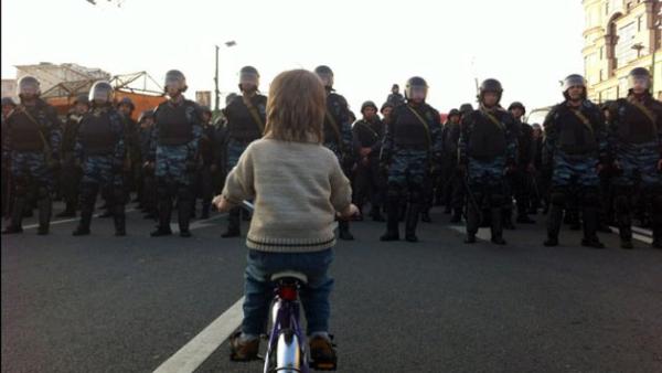 Love this photo RT @OCongress Young Russian boy rides his bicycle up to riot police outside Moscow's Kremlinpic.twitter.com/y2i9KDXz