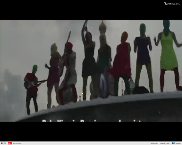 Screenshot: #PussyRiot impromptu concert at the Kremlin http://www.guardian.co.uk/world/2012/mar/11/putin-russia-president-election-protests … later arrested for "punk prayer" #OFF12pic.twitter.com/RTWEmllr