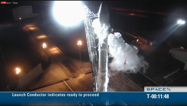 Screenshot: #SpaceX Dragon sitting on the pad at T-10', all systems go for #DragonLaunchpic.twitter.com/G5gHDAvH