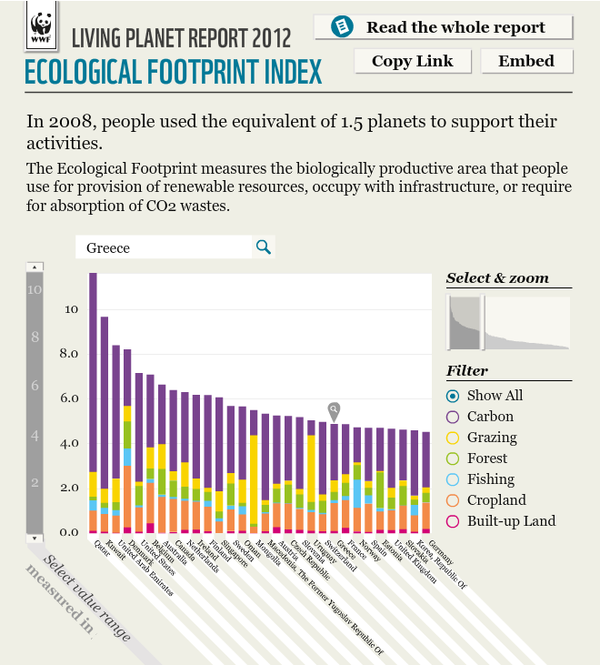 Ecological Footprint Index: Greece top polluter #22, over France, UK, Spain & Germany #LPR2012 #LivingPlanet #rioplus20pic.twitter.com/obIrXZmJ