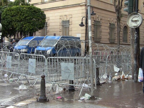 Barbed wire and robocops RT @TrellaLB #Tunis #Bourgeiba street this morning pic.twitter.com/hjbClpK3pic.twitter.com/ReDaR4HS