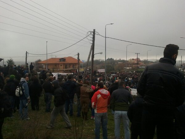 That's a big crowd TR @menacius Protest over #skouries at the crossroads to Megali Panagia #rbnewspic.twitter.com/Q5KRihFJNb