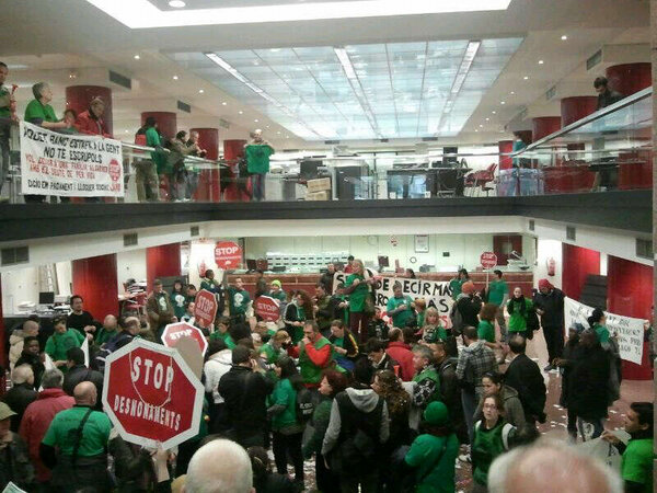 TR @mpatman @PAH_BCN occupies Banco Popular offices in #Barcelona in protest over evictions pic.twitter.com/4s3iwm68ej #Spain #austerity