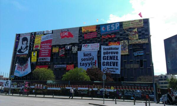 Protest banner patchwork on building frontage RT @salmasaid #taksimpic.twitter.com/wDaJcBpM4i