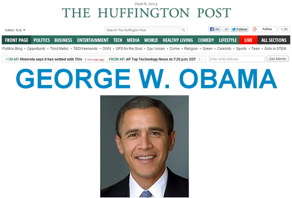 I heart HuffPo right now RT @acarvin HuffPost homepage headline right now: GEORGE W. OBAMA.pic.twitter.com/aUaA0mPL2F