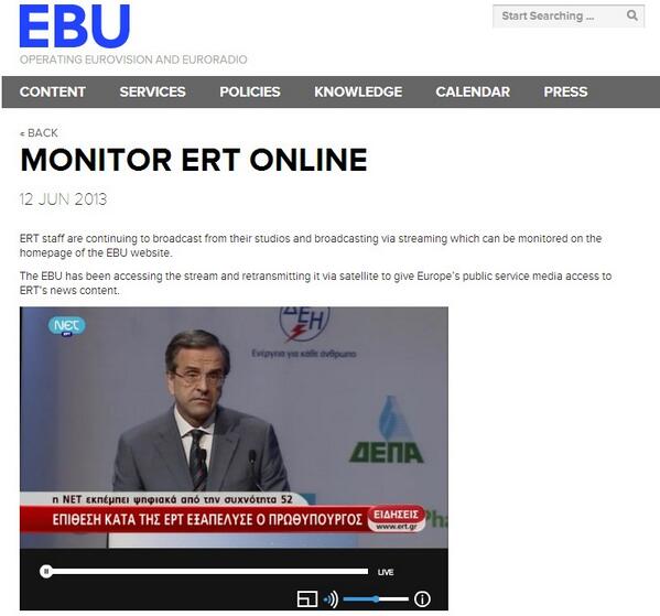 .@PrimeministerGR complaining about lack of coverage on #ert after he ordered it closed (on ERT via @EBU_Eurovision)pic.twitter.com/fYG50Udh1n