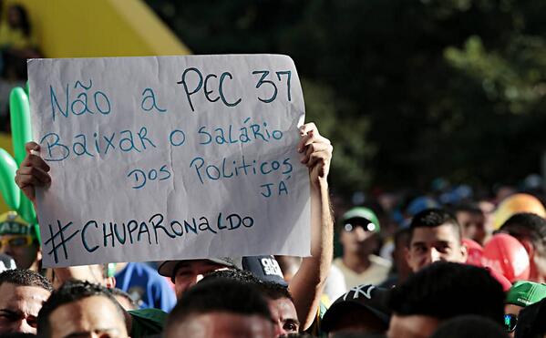 Protester in Sao Paulo while watching Brazil's game (Folhapress)pic.twitter.com/h50inKnMLa