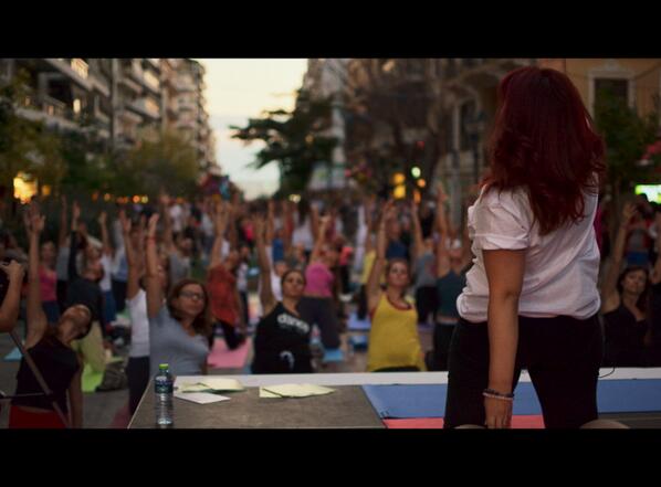 Street yoga. A pedestrian street full of performers, actuallypic.twitter.com/F4ES8XLgyE
