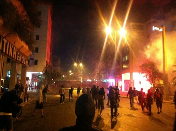 It's on in Athens TR @ypopto_mousi Flashbangs after attack on police block by young hoodies w rockspic.twitter.com/2jl85AERjC