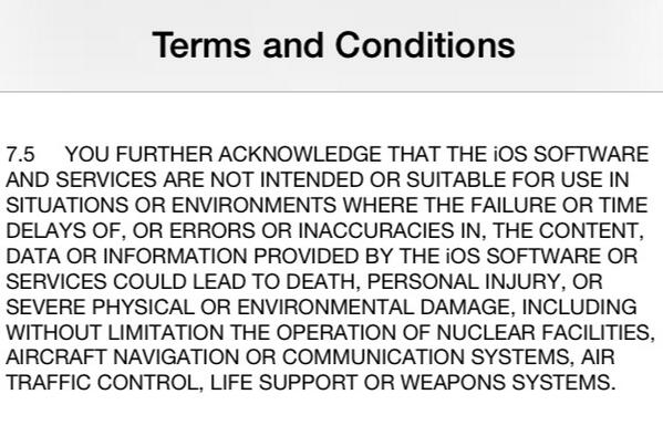iOS IS NOT INTENDED FOR USE IN THE OPERATION OF NUCLEAR FACILITIES, AIRCRAFT NAVIGATION OR WEAPONS SYSTEMS.pic.twitter.com/FubkLs5Qcy