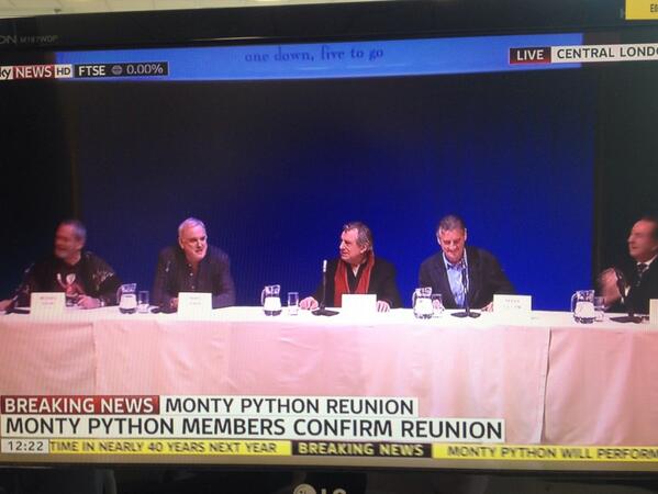"..and they all rejoiced!" RT @JamieWood_Sky Here they are together again, it's..... #MontyPython #MontyPythonReunionpic.twitter.com/qwd38L2lGe