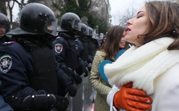Another one for the "Beautiful pro-EU protesters in Kiev" tumblr... Photo: Zurab Kurtsikidze/Efepic.twitter.com/bGwvdQHTAP