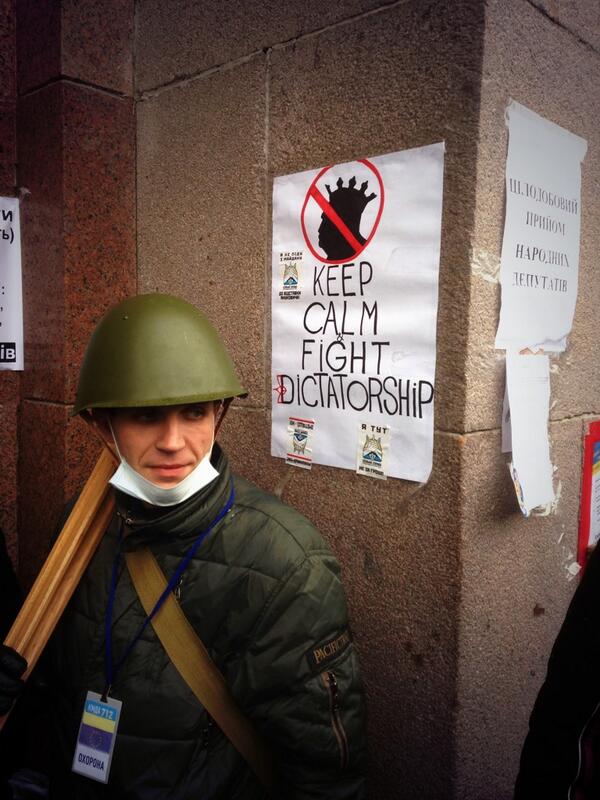 "Keep calm, fight dictatorship" RT @maxseddon: Outside City Hall #euromaidanpic.twitter.com/lGHDrEZkEJ