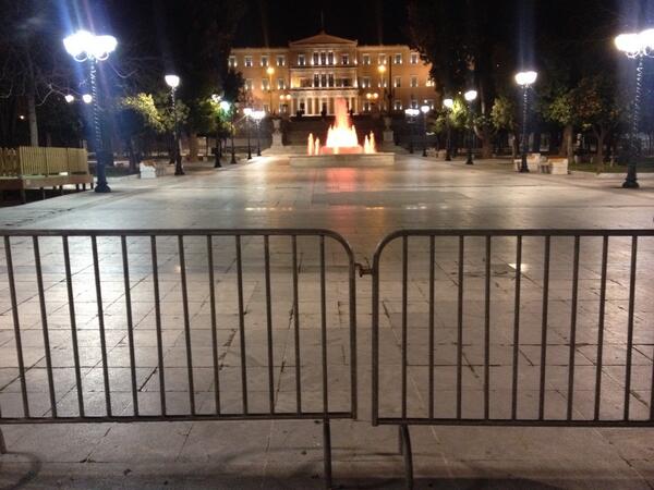 Railings bar access to "public" #Syntagma (Constitution) square. Goodnight, #Greece RT @MakisSinodinos: Νταξ...pic.twitter.com/8Ka5crkfjH