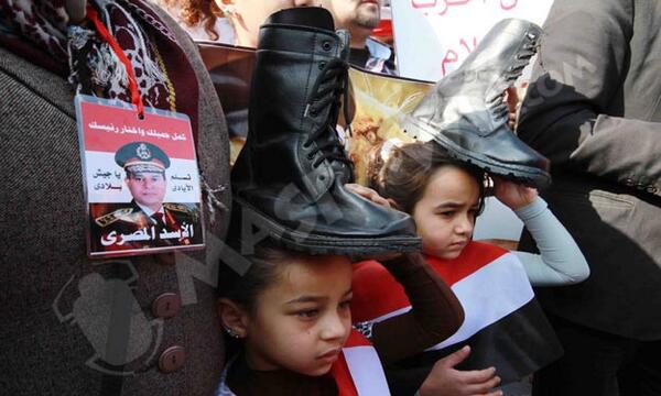 Incredibly depressing Sissi-mania. Kids posing with army boots on their heads RT @Sarahngb: Shit MT @MaherHamoud1pic.twitter.com/7TZ31rA7Zg