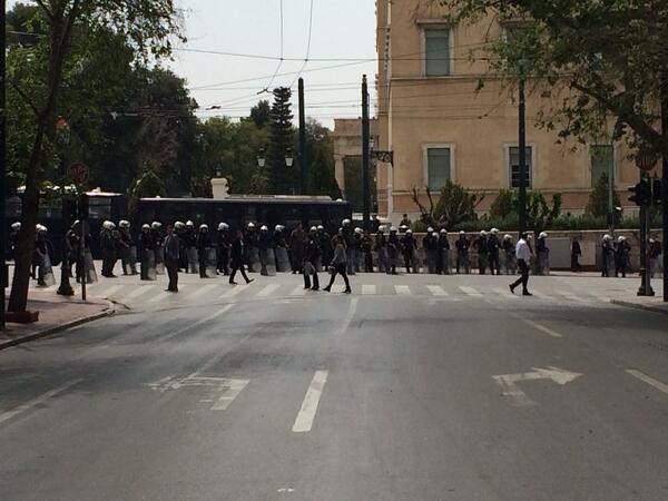 Riot police at Syntagma. They should pitch tents RT @MakisSinodinos Για την πορεία των δημ/φων αυτή η υπερπαραγωγή;pic.twitter.com/1M69My9lWB