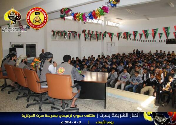 Yikes MT @MaryFitzger Ansar al-Sharia event at main school in Sirte. Focusing on schoolkids in Benghazi too #Libyapic.twitter.com/WdPdELKe4a