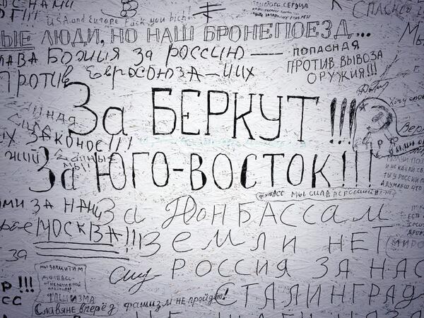 Berkut love graffiti? RT @paulgypteau Pro-Russians' wall near #Slovyanskpic.twitter.com/zONg7BfRyS