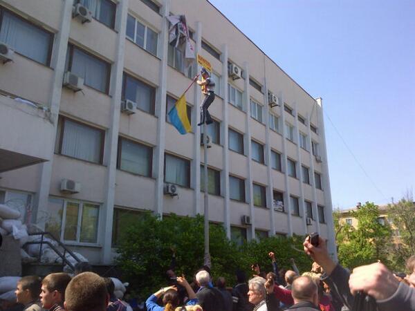 Mariupol RT @clarissaward: Police have left and pro-Russians take back town hall. Ukrainian flag goes downpic.twitter.com/KKUPTCKmkH