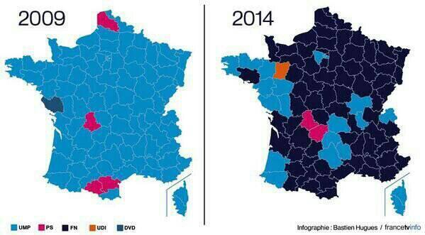 #France RT @spignal Dark blue = party whose founder and honorary president is a convicted racist and Holocaust denierpic.twitter.com/VxSWaYJATn
