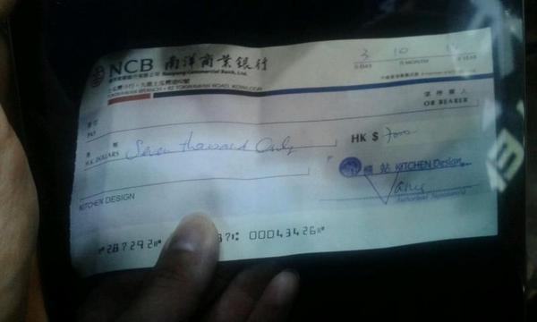 'Kitchen Design'? RT @freakingcat Cheque allegedly dropped by paid thug in Mongkok #OccupyCentral #UmbrellaRevolutionpic.twitter.com/fqEPJRRMyz