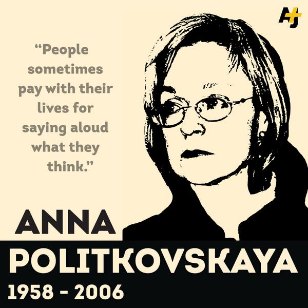 In Putin's Russia.. MT @ajplus Anna Politkovskaya was murdered 8 yrs ago. 13 journalists have been murdered since '06pic.twitter.com/nr1aTd6K6C