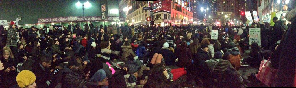 5 hrs ago. What a sight RT @NegarMortazavi Thousand protesters sit in silence in NYC Herald Sqr. #EricGarnerpic.twitter.com/ZQdmKGCfRa