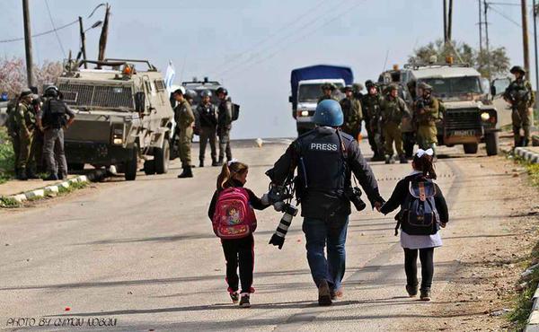 Great photo MT @Noah_Browning Palestinian @Reuters photog walks schoolgirls home thru clashes yesterdaypic.twitter.com/4KV43s0avB